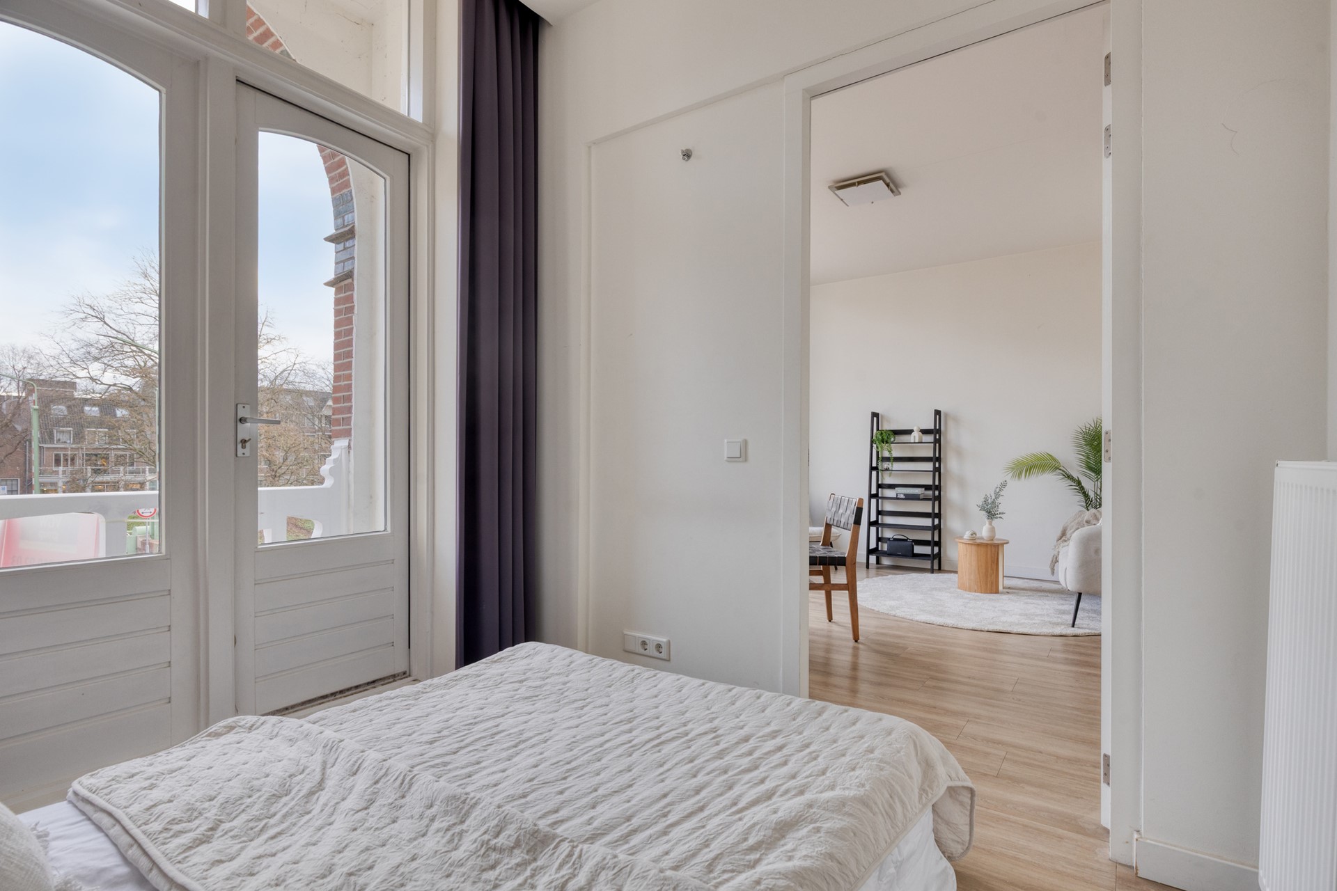 Aan de voorzijde beschikt het appartement over een balkon van circa 3 m², gelegen op het zuidwesten. Een fijne plek om in de middag en avond van de zon en het uitzicht over de singel te genieten.